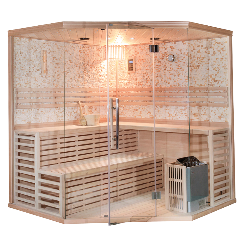 This indoor sauna fits perfectly into any corner! Made from solid fir wood, the Grimmstad sauna cabin offers space for 4-5 people. All that's missing is you!
